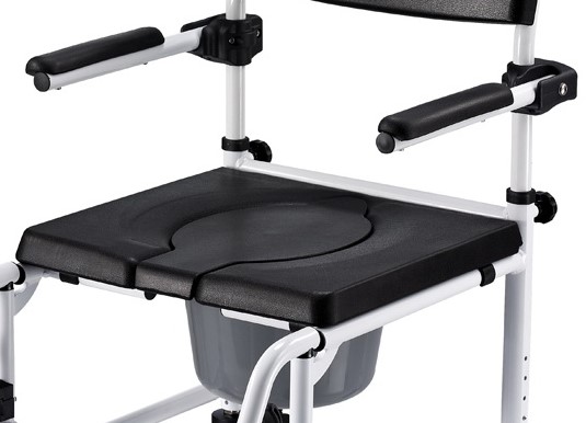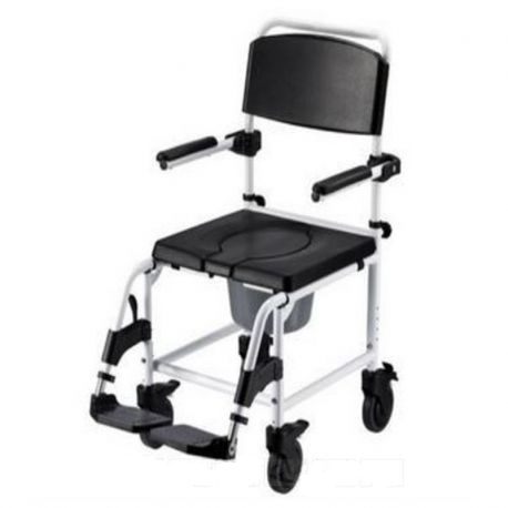 La silla de ducha e inodoro Garbi permite al usuario usarla como silla para ducharse, para ponerla encima del WC y para que sea un inodoro, tiene una cubeta extraible